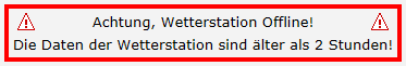 Hier scheint ein ernsteres Problem vorzuliegen. Wenn die Wetterstation länger als 2 Stunden keine Wenn dieser Fehler auch nach mehreren Stunden nicht behoben ist verständigen sie bitte Webmaster Christian Dopler Vielen Dank! |