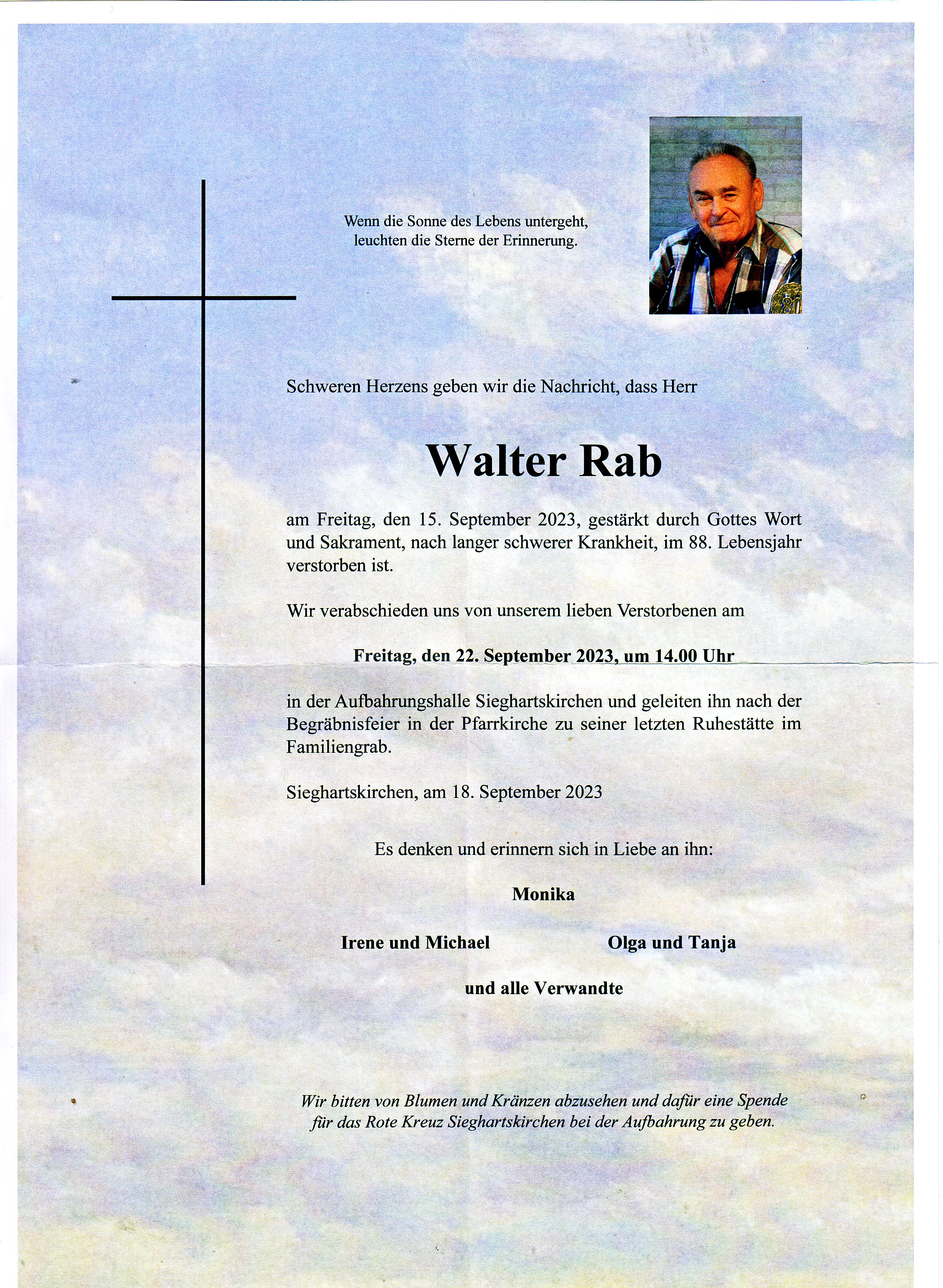 am Freitag den 15. September 2023 nach langer schwerer Krankheit im 88 Lebensjahr verstorben ist.